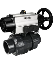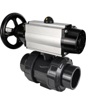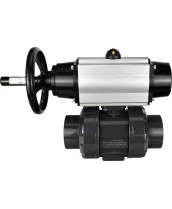 Кран шаровой DN.ru BV4242E-FP-GRM-ISO Дн80 Ру10 полнопроходной, корпус - НПВХ, шар - НПВХ, уплотнение - EPDM, с пневмоприводом PA-DA-105-1 и пневмораспределителем 4M310-08 220В