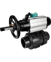 Купить Кран шаровой DN.ru BV4242E-FP-GRM-ISO Дн80 Ру10 полнопроходной, корпус - НПВХ, шар - НПВХ, уплотнение - EPDM, с пневмоприводом PA-DA-105-1, пневмораспределителем 4M310-08 24В и магнитным переключателем ALS200D вы можете в компании Стандарт-Н, оформив заказ в интернет магазине, или