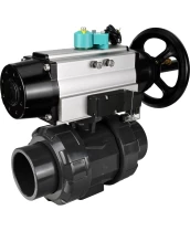 Кран шаровой DN.ru BV4242E-FP-GRM-ISO Дн80 Ру10 полнопроходной, корпус - НПВХ, шар - НПВХ, уплотнение - EPDM, с пневмоприводом PA-DA-105-1, пневмораспределителем 4M310-08 24В и магнитным переключателем ALS200D