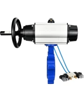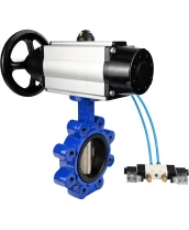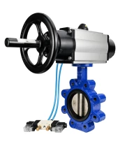 Затвор дисковый поворотный DN.ru WBV1616E-2W-Fb-H Ду150 Ру16 LUG корпус - чугун QT450, диск - чугун QT450, уплотнение - EPDM, с пневмоприводом DN.ru PA-DA-105-1 и пневмораспределителем 4V320-10 220В