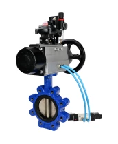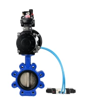 Затвор дисковый поворотный DN.ru WBV1616E-2W-Fb-H Ду150 Ру16 LUG корпус - чугун QT450, диск - чугун QT450, уплотнение - EPDM, с пневмоприводом DN.ru PA-DA-105-1, пневмораспределителем 4V320-08 220В, БКВ APL-210N и БПВ AFC2000