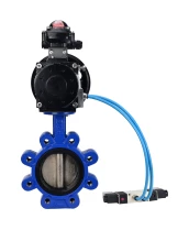 Затвор дисковый поворотный DN.ru WBV1616N-2W-Fb-H Ду125 Ру16 LUG корпус - чугун QT450, диск - чугун QT450, уплотнение - NBR, с пневмоприводом DN.ru PA-DA-105-1, пневмораспределителем 4V320-10 220В и БКВ APL-210N