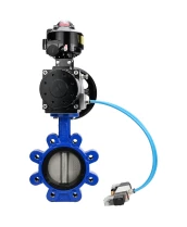 Затвор дисковый поворотный DN.ru WBV1631E-2W-Fb-H Ду125 Ру16 LUG корпус - чугун QT450, диск - нержавеющая сталь 304, уплотнение - EPDM, с пневмоприводом PA-DA-105-1, пневмораспределителем 4V320-10 220В и БКВ APL-510N EX